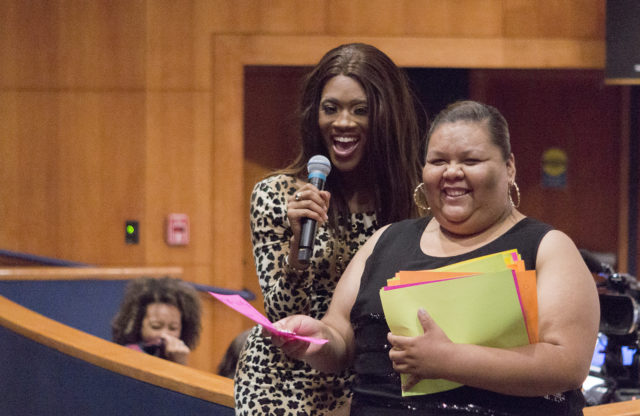 Dressed in drag, an announcer flirted, danced and joked with performers throughout the show. The announcer also engaged the audience and the performers in a conversation about HIV and AIDS safety during the event.