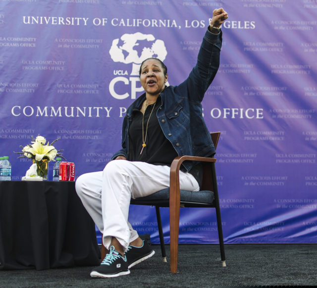 Garner was the keynote speaker at the UCLA Community Programs Office’s annual reception, which was held at the Anderson Alumni Plaza. The event also featured food from various cultures, performances by student groups and a prayer led by members of the Muslim Student Association.
