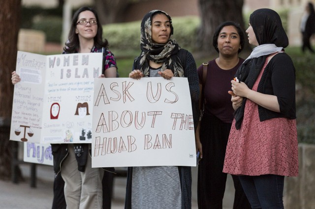 Event organizers hosted the event to show solidarity with Muslim women, said Merima Tricic, an event organizer and fourth-year political science, study of religion and world arts and cultures student. She added she hopes the protest will bring awareness to incidents of religious discrimination in Europe.