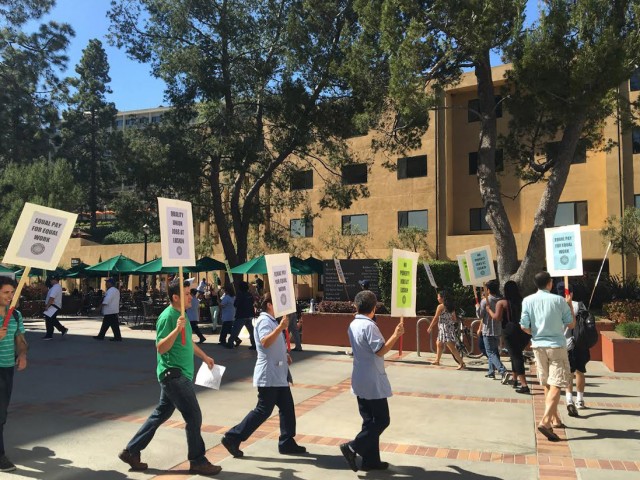 AFSCME 3299 represents about 20,000 workers across the University of California, according to its website. Protesters held signs that said “quality union jobs at Luskin,” “equal pay for equal work” and “no poverty jobs at Luskin.”
