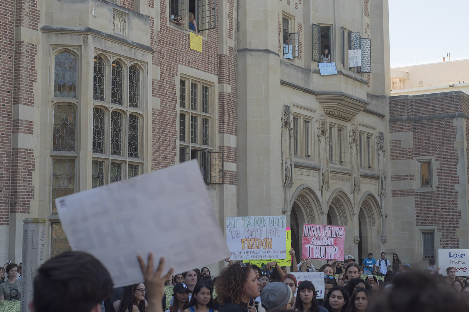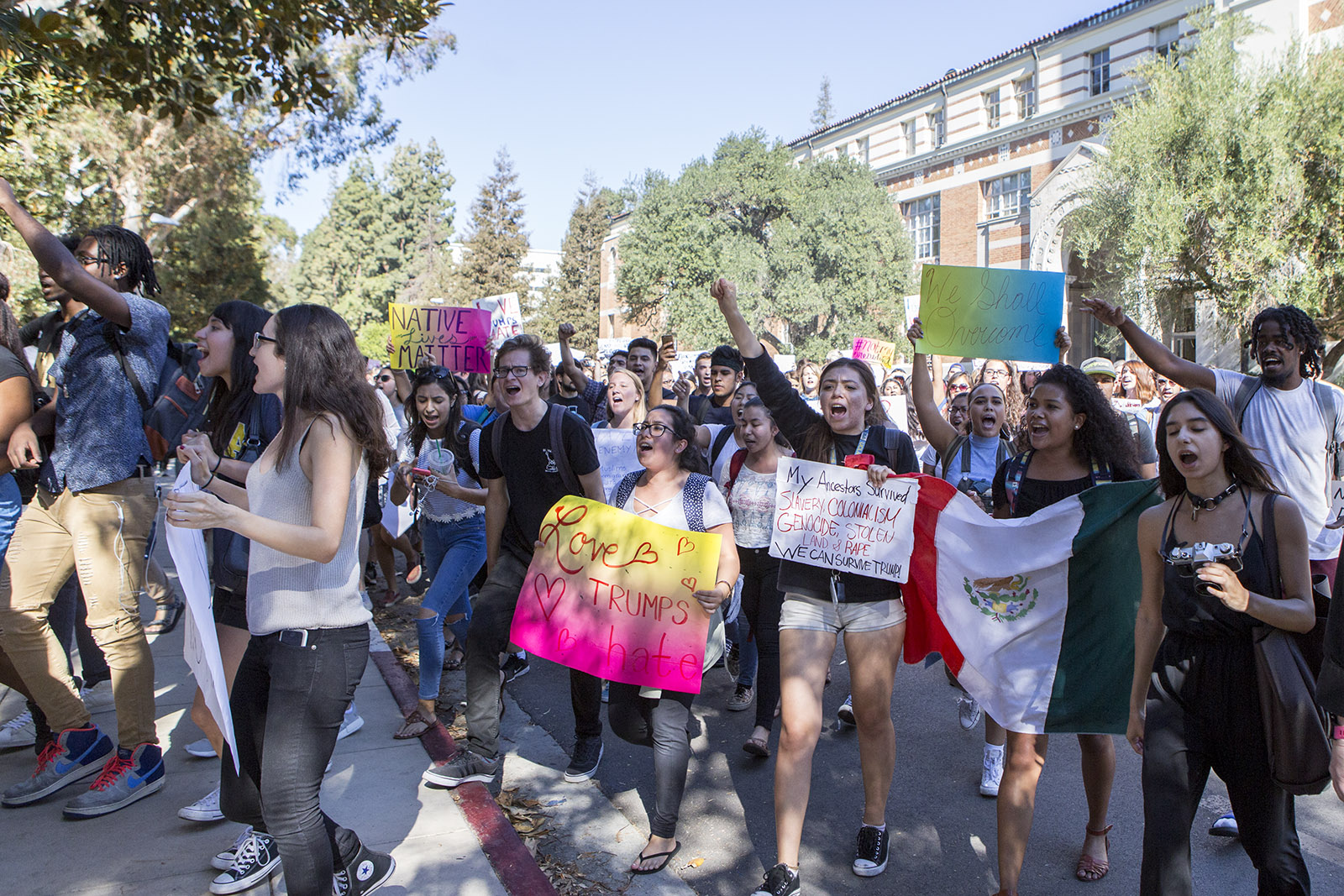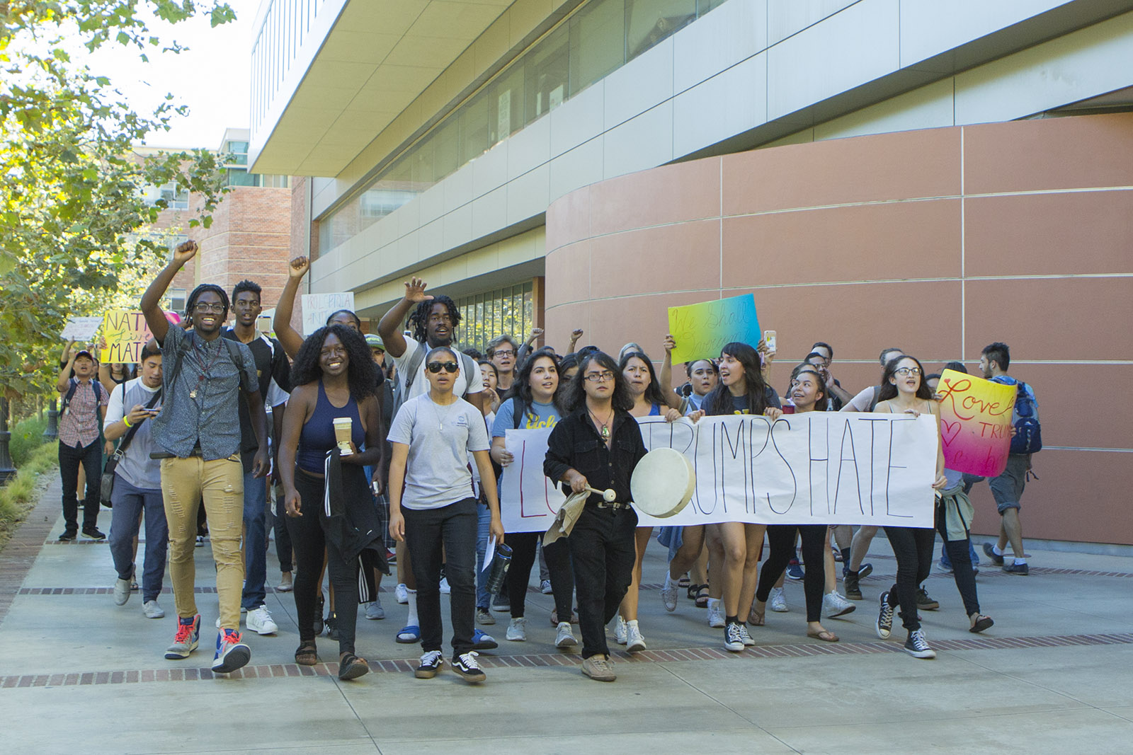 Young Progressives Demanding Action at UCLA organized the “Love Trumps Hate Rally” and spread the word on Facebook. The protest is the second on campus since the election results were announced. About 2,000 students marched through campus and Westwood to protest Donald Trump early Wednesday morning.