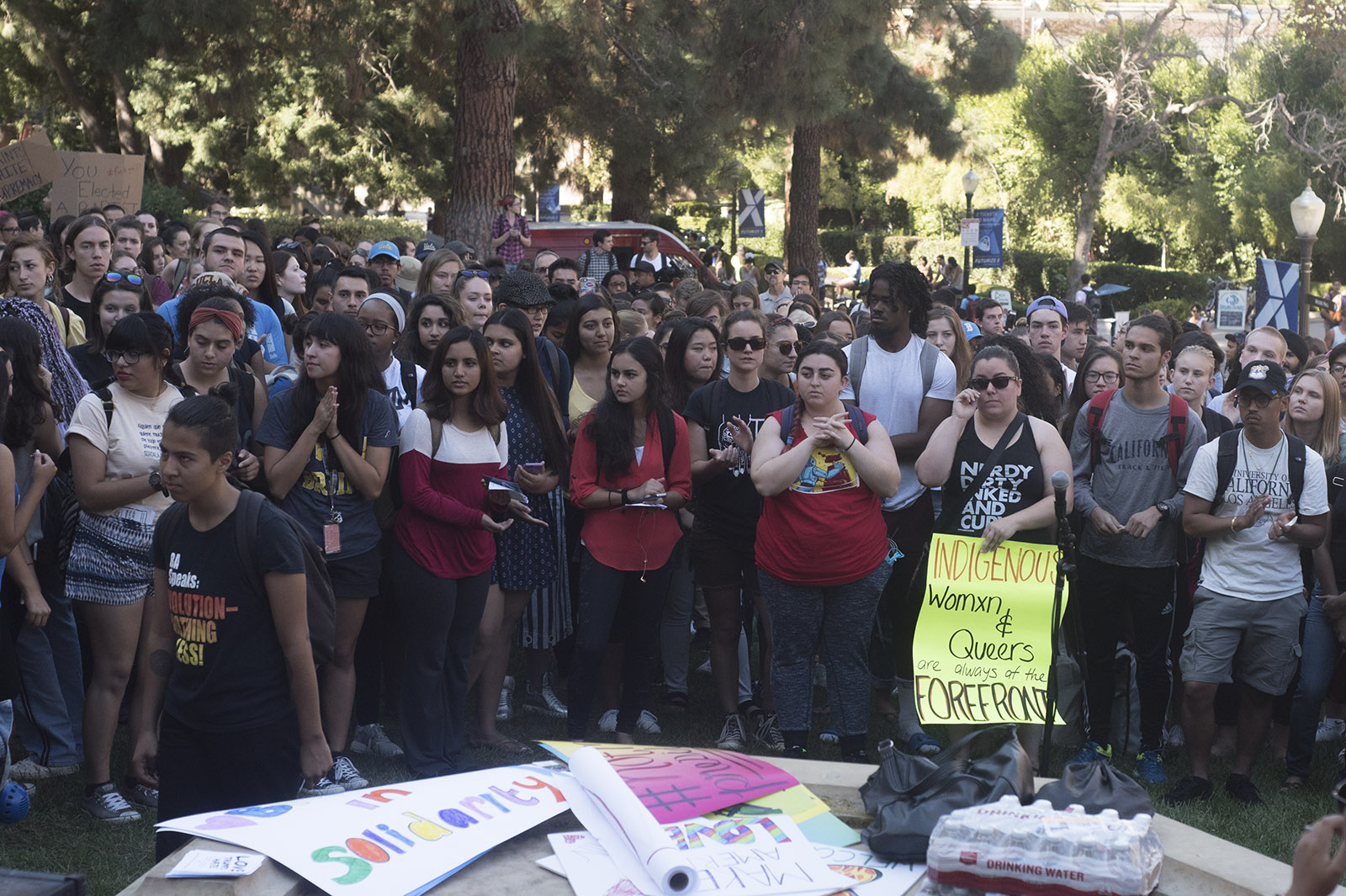Students spoke in support of progressive values and ethnic minorities at the rally. Students from the University of Southern California and California State University, Los Angeles, also attended the rally.