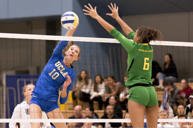 The senior middle blocker’s team-high 15-kill performance powered No. 9 UCLA (23-5, 14-4 Pac-12) women’s volleyball to take down No. 19 Oregon (18-8, 11-6) in four sets Friday night.