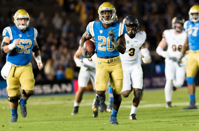 Check out Laird making an incredible run that ended up with a hurdle over the Bruins’ redshirt junior defensive back Adarius Pickett. Laird also managed to escape four defensive linemen on the 29-yard rush below.
