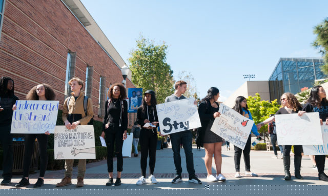 Undergraduate Students Association Council members are encouraging students to email UCLA administrators about two students who tried to force their way through the “11 Minutes for the 11 Million” rally. Students stood in solidarity for 11 minutes by the Bruin Bear to bring attention to the issues 11 million undocumented individuals in the United States face. They created a human blockade, and individuals who wanted to pass had to wait for 11 minutes or walk around the blockade by going through John Wooden Center’s steps.