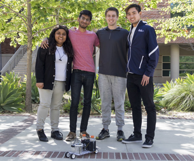 Jordy Supandi, a second-year mechanical engineering student who is on Rockey’s team, said it would be too complicated to just use one chemical reaction to stop and start the car, so the car uses two separate mechanisms, one for powering the car and one for stopping it. That way, the team can be sure the car moves at constant velocity and stops in the designated distance, he said.