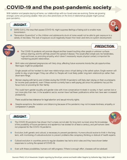 UCLA researchers are predicting the COVID-19 pandemic may cause societies to become more socially conservative but may not greatly hinder human progress, among other predictions.