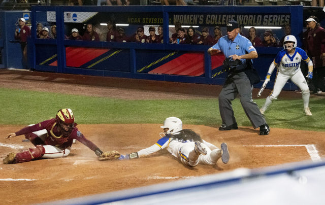 No. 2 seed UCLA softball (47-5, 19-2 Pac-12) defeated No. 10 seed Florida State (44-11-1, 26-5-1 ACC) in the opening round of the Women’s College World Series 4-0. The Bruins scored all four of their runs in the fifth inning or later, which coach Kelly Inouye-Perez said was a result of the entire lineup making adjustments to the Seminoles’ pitcher.