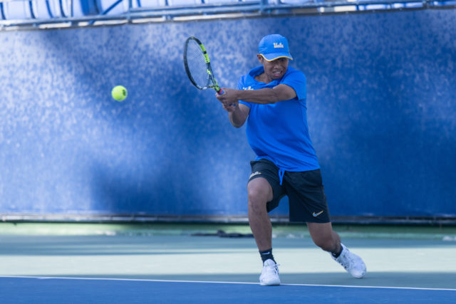UCLA’s doubles festivities began on court two, where redshirt junior Emon van Loben Sels and senior Gianluca Ballotta defeated Manvydas Balciunas and Stian Klaassen 6-2.