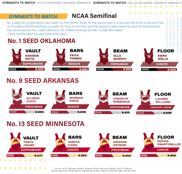 The Sooners were the No. 1 squad in the nation for nine weeks in a row during the regular season, owning an NQS of 197.980 and top-five rankings on every event. The squad has only lost once this season – to No. 3 seed Florida by just 0.025 in the SEC championships.
