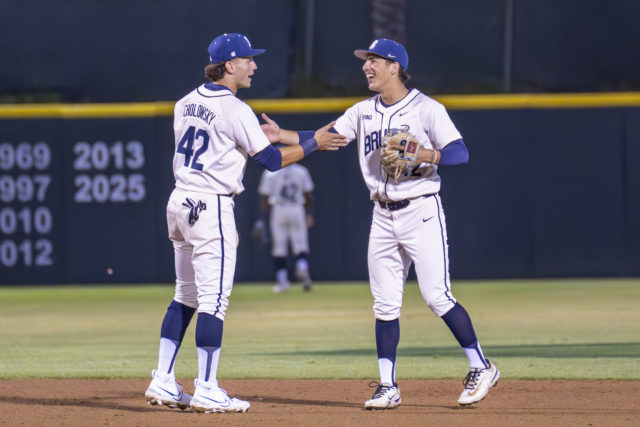 Following a two-strike hit by pitch on redshirt junior right fielder Payton Brennan and a single from Gasparino, junior catcher Cashel Dugger took a hanging cutter to the opposite field for an RBI double. Selvig’s day would end after he walked freshman designated hitter Trey Gudoy. With the bases loaded, fellow freshman second baseman Aiden Aguayo knocked a single to right field to tie the game at two apiece.