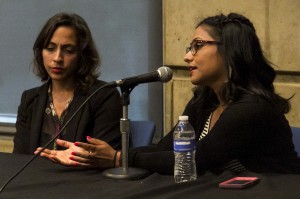 Photo: UCLA alumnae Nagwa Ibrahim (left), criminal defense and immigration lawyer, and Tania Rashid, a freelance journalist, spoke as panelists at Human Rights Night. (Zinnia Moreno/Daily Bruin)