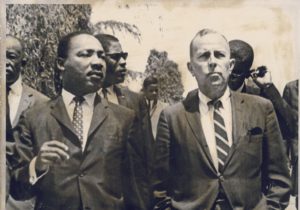 Photo: Martin Luther King Jr. spoke at UCLA on April 27, 1965 in front of about 5,000 people at the bottom of Janss Steps. Then-UCLA Chancellor Franklin Murphy (right) introduced King. (Daily Bruin file photo)