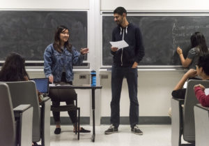 Photo: General Representative 2 Kayla He and Ashraf Beshay, a fifth-year biology student and member of He’s office who advocated for the position’s creation, helped lead a town hall to gather feedback on the how to write the bylaws for the new international student representative office. (Quanzhao “Ari” He/Daily Bruin)