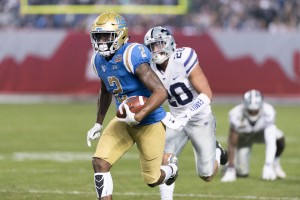 Photo: Kansas State quarterback Alex Delton gouged UCLA for 158 yards on 20 attempts to lead his team in yards on the ground. (Kathy Chen/Daily Bruin)