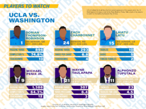 Sam SettlemanSports editorPrediction: UCLA 31, Washington 42 Last year, I fixated on Jayden Daniels as the Pac-12 quarterback whom I thought could blossom into a star. Read more...