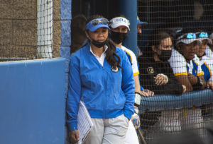 Photo: UCLA softball coach Kelly Inouye-Perez took her team to another Women’s College World Series in June but came up just short of winning another national championship after a Pac-12 championship-winning regular season. (Kaiya Pomeroy-Tso/Daily Bruin senior staff)