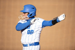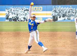 Photo: Redshirt sophomore pitcher Megan Faraimo pitched seven shutout innings in No. 2 seed UCLA softball’s victory over Virginia Tech on Friday. Faraimo allowed only one hit and two walks in the contest while striking out 11. (Kaiya Pomeroy-Tso/Daily Bruin senior staff)