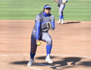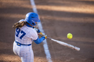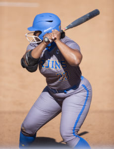Photo: Playing in all but one of No. 4 UCLA softball’s games this season, redshirt junior outfielder Aaliyah Jordan is hitting .409 to go along with one home run and nine RBIs. (Sabrina Wu/Daily Bruin)